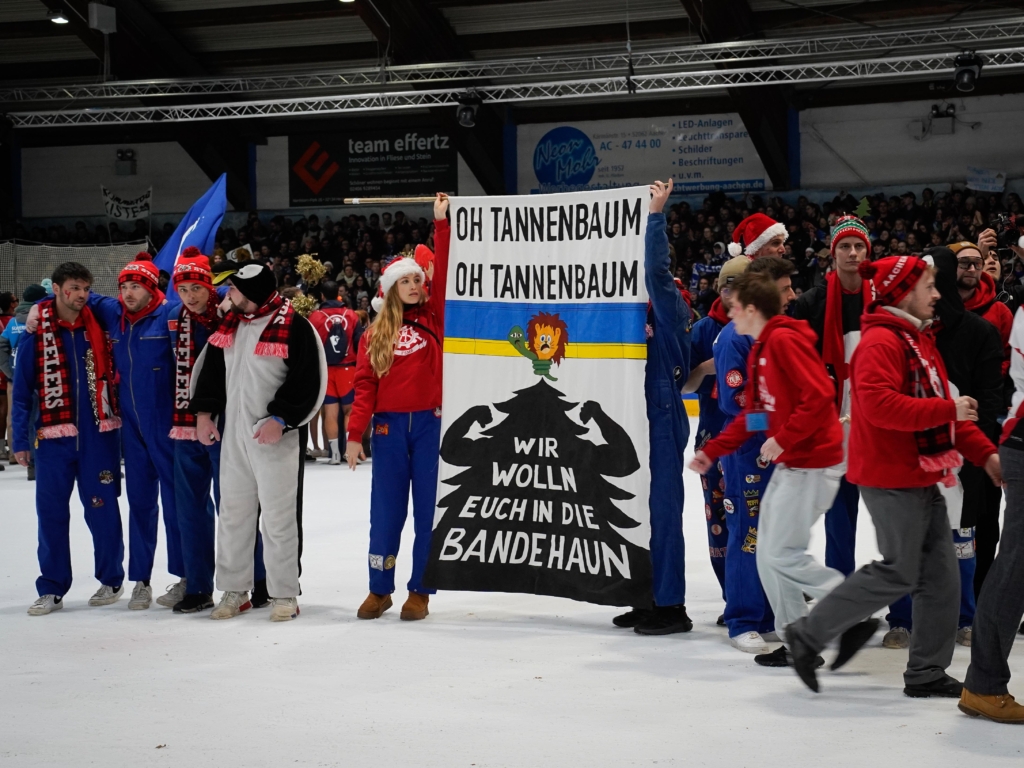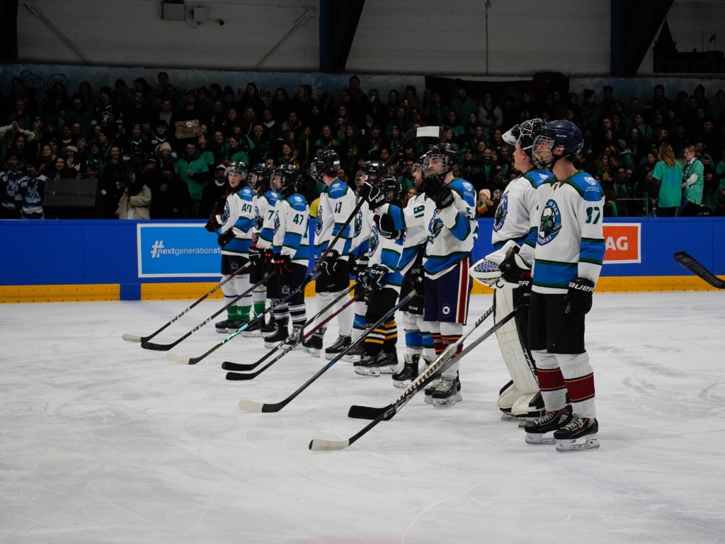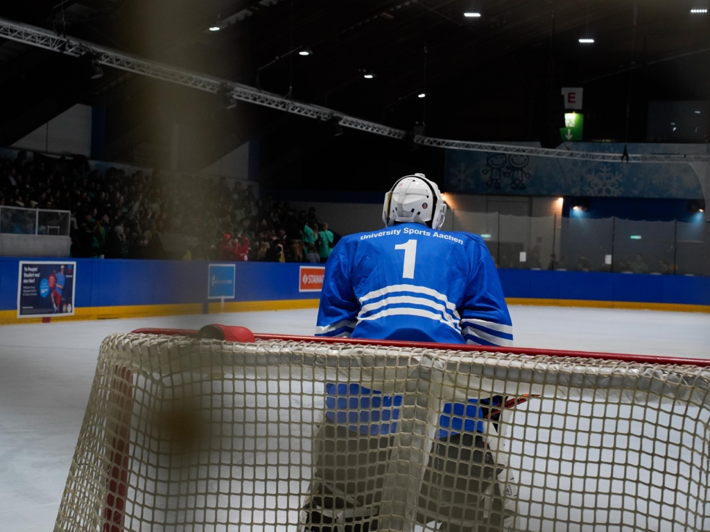 Na gut, wir waren vielleicht nicht direkt auf dem Eis, dafür aber mittendrin beim 35. Eishockey-Uni-Cup der RWTH Aachen in der ausverkauften 100,5 Arena.