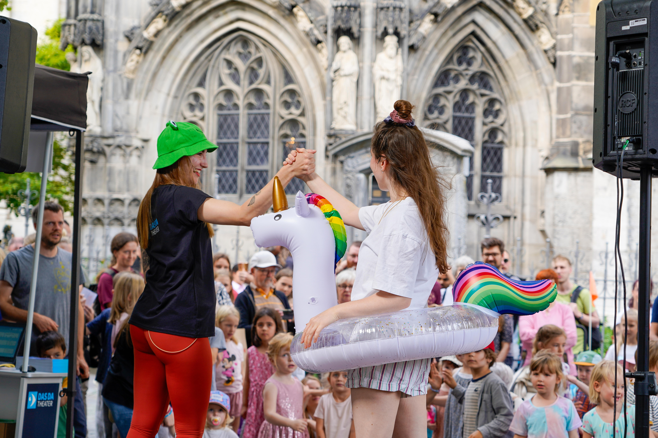Auf dem Münsterplatz haben wir zusammen mit den Configuranis und dem DAS DA Theater wieder ein buntes Kinderprogramm gezaubert: Jonglage, Luftballonkunst und der Mitmach-Workshop „Das NEINhorn und der Geburtstag“ – strahlende Kinderaugen garantiert.